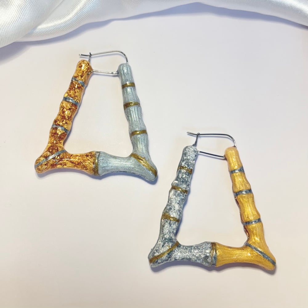 Serve your bEST look with these stunning bamboo earrings inspired by Bianca Belair’s iconic gear from WrestleMania 40. They feature a complex, two-toned silver and gold design, enhanced with metallic foil. These statement earrings pay tribute to the beauty and power of the EST herself.🩶✨