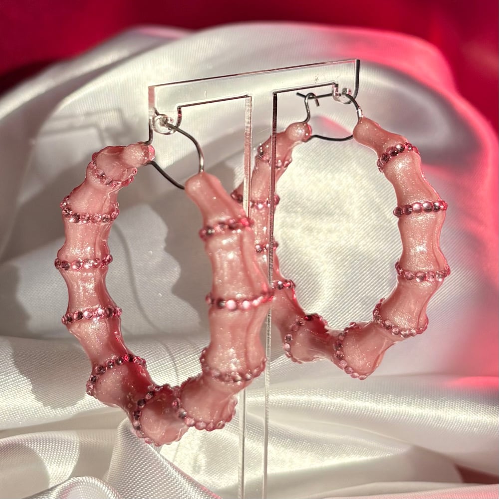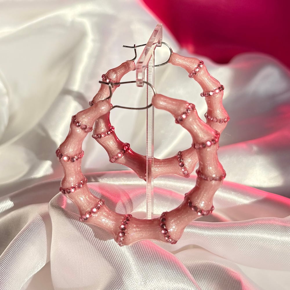 The design features a soft pink base, and rhinestone accents on each band.